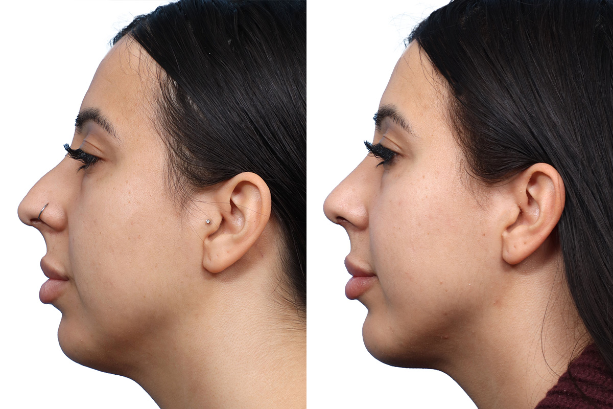 Balancing the chin with the nose can disguise the size of the nose, but the procedures can be performed in conjunction to enhance the results of both. Your rhinoplasty procedure may even be simplified if the chin augmentation balances your features in a more flattering way.